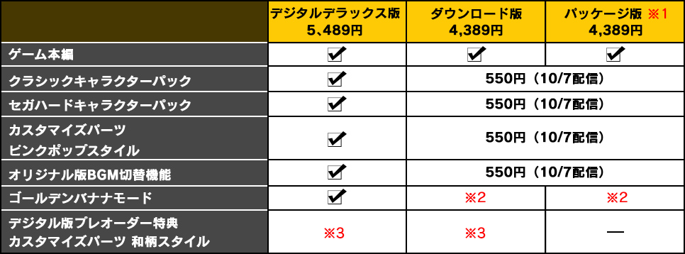 ※2:ゴールデンバナナモードはゲーム本編の進捗状況に応じてゲーム内ポイントショップで入手可能です